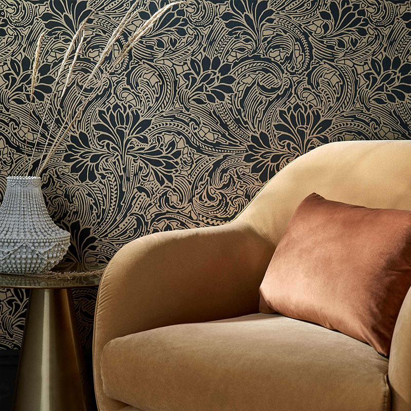 1838 Wallcoverings V&A Decorative Papers Eden Wallpaper Midnight