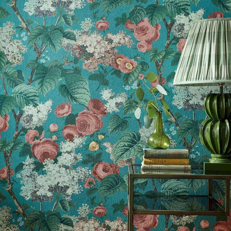 1838 Wallcoverings V&A Decorative Papers Floribunda Wallpaper Teal
