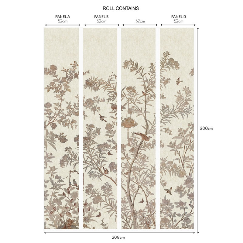 Stunning in its grandeur, Moor Park Mural was adapted from a set of hand-painted Chinese wallpapers that once adorned a room at Moor Park, Hertfordshire, and are now part of the V&A’s national wallpaper collection. Each element of the scene was carefully reinterpreted from the historic wallpaper, refreshing the original, whilst at the same time retaining the character and true charm that had first attracted the 1838 team. Available in 2 colours: Prussian Blue and Oyster.
