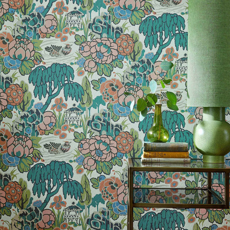 V&A Decorative Papers Madarin Garden. Available in Mist, Coral, Ink and Jade.