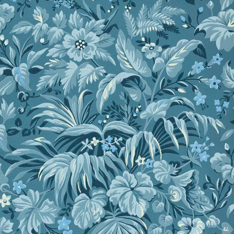 1838 Wallcoverings V&A Decorative Papers Floral Fanfare Wallpaper Cornflower