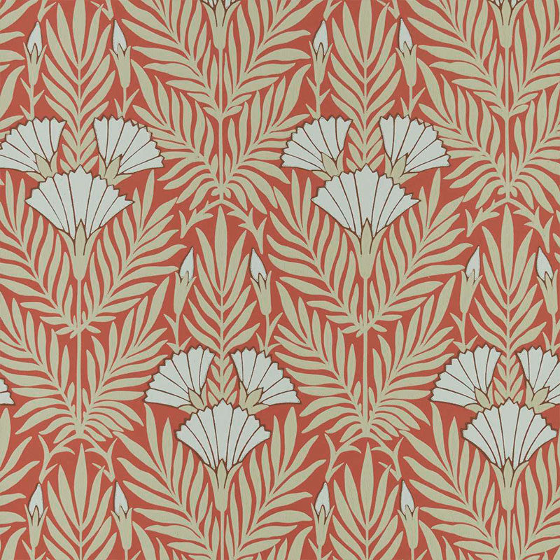 1838 Wallcoverings V&A Decorative Papers Floral Fanfare Wallpaper Coral