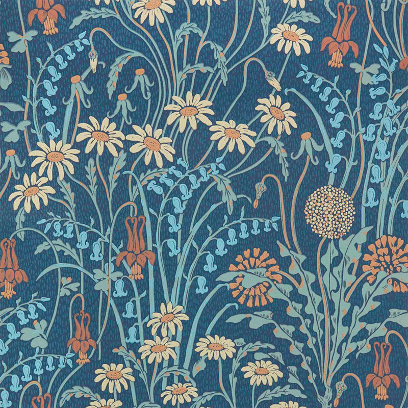 1838 Wallcoverings V&A Decorative Papers II Flower Meadow Prussian Blue