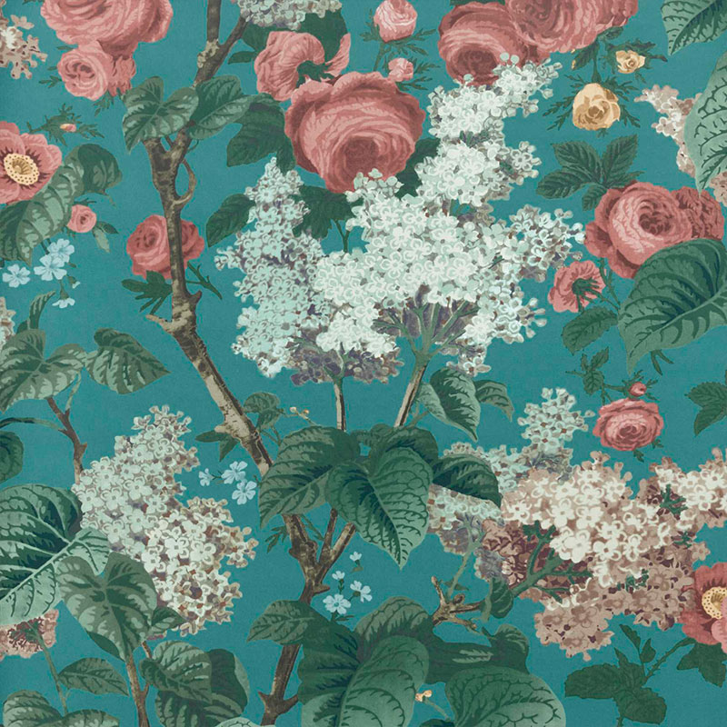 1838 Wallcoverings V&A Decorative Papers Floribunda Wallpaper Teal